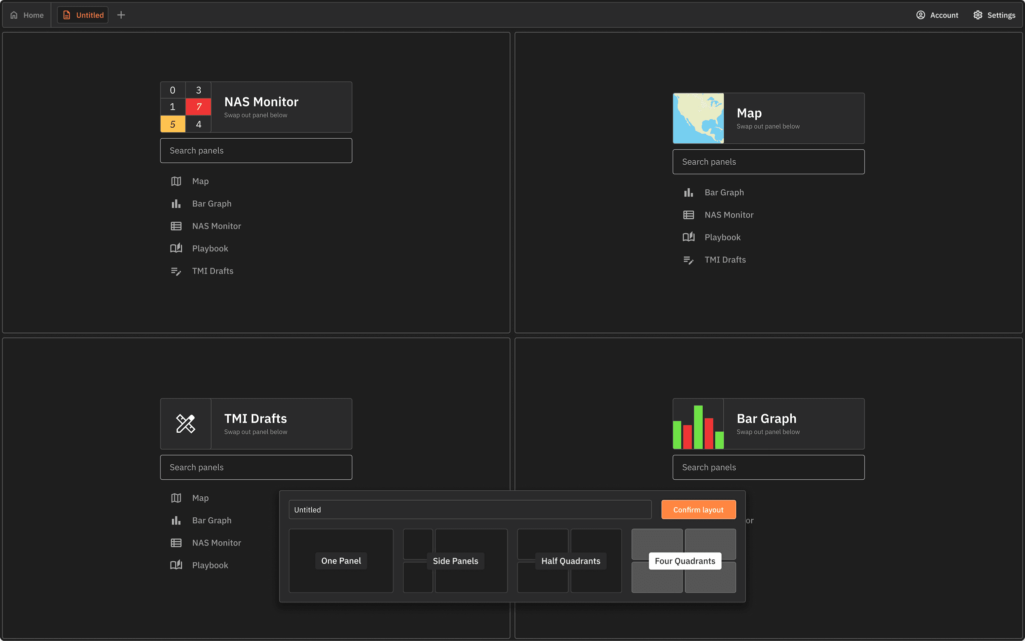 Our redesign addresses this by consolidating these tools into a single, streamlined interface. We introduce a new system architecture with customizable “spaces” that organize tabs and panel layouts to fit specific situations. Users can adjust these panels to display relevant data, visualizations, and map views, offering flexibility and improving user flow.
