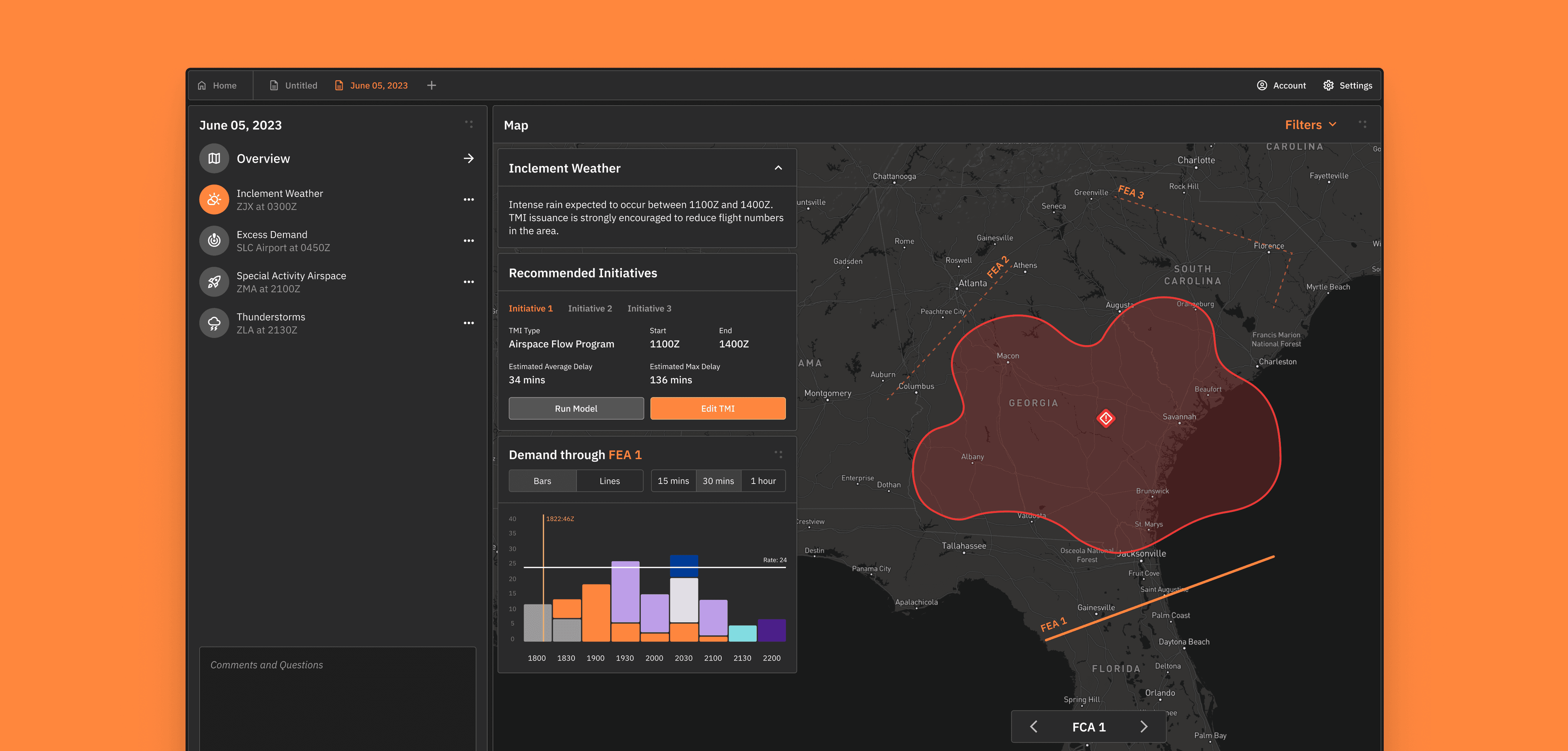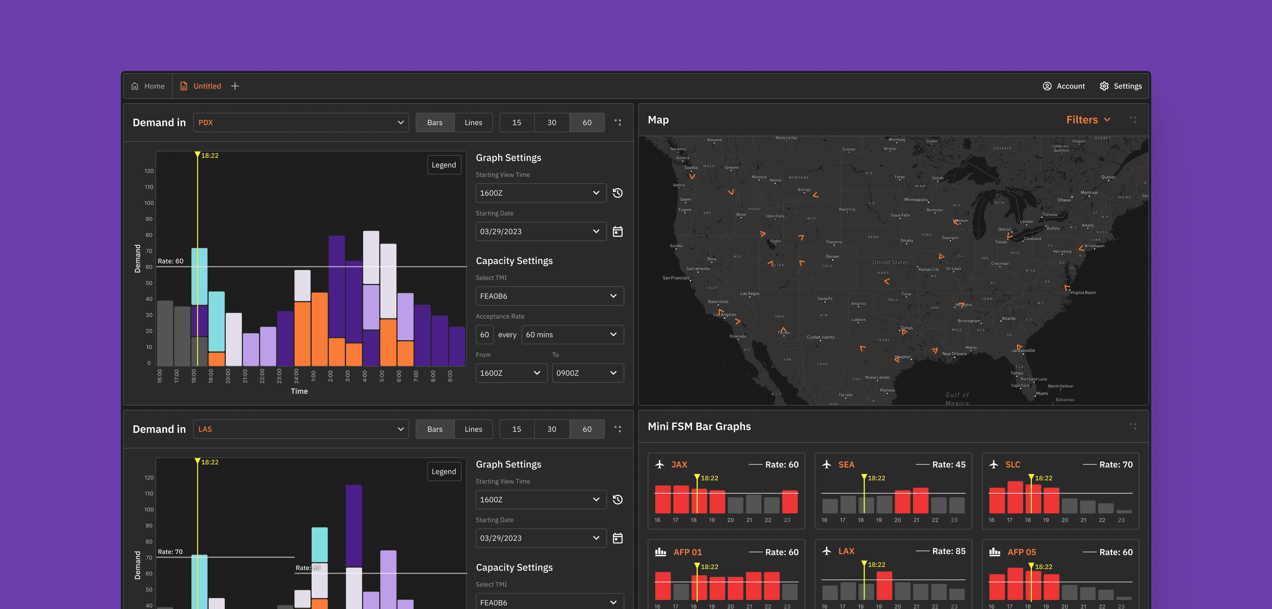 Monitor aircraft demand vs. capacity.